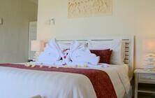 Die vier Beachbungalows haben uneingeschränkten Meerblick und sind 50 Meter vom Meer entfernt. Jeder Bungalow, mit einer Größe von 31 m2, hat eine eigene Terrasse. Die modern eingerichteten Bungalows sind aus erstklassigen Materialien gebaut, mit dem traditionellen Alang Alang Dach gedeckt und bieten Einzel- oder Doppelbett, AC, Safe, Minibar, Toilette und Kalt- und Warmwasser.