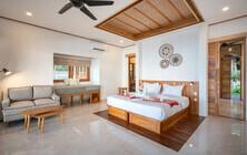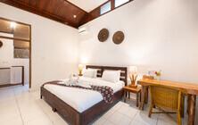 Die Deluxe Doppelbungalows mit insgesamt elf Zimmern verteilen sich auf dem großzügigen Grundstück und sind wunderbar in den üppigen Garten eingebettet. Alle Deluxe Zimmer sind geräumig und haben ein großes Bad mit Dusche/WC, eine Klimaanlage, einen Decken-Ventilator, viele Steckdosen und USB Ladeanschluss, einen kleinen Schreibtisch und eine eigene Terrasse. Trinkwasser steht in den Zimmern kostenfrei bereit.