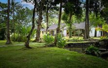 Die Anlage liegt direkt am Meer in einem großen tropischen Garten mit vielen alten Bäumen und einem dunklen Kiesel- und Sandstrand.